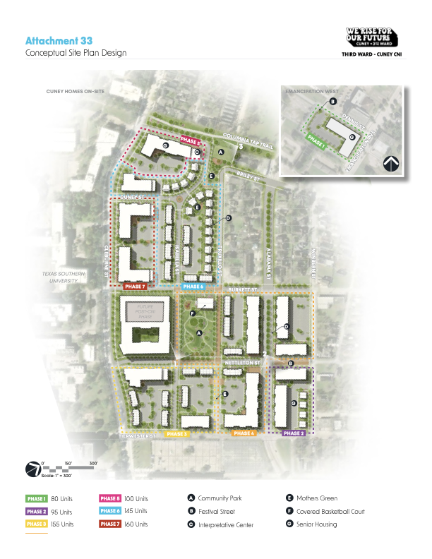 New construction of 155 apartments on the former Cuney Homes site, along an extension of Nettleton Street and Tierwester Street below an extension of Truxillo Street. This will serve as a greenway and Eastern gateway into this new mixed-use community.